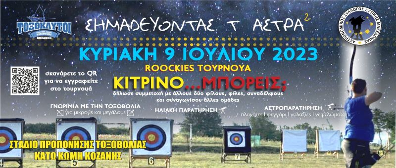 Ελάτε μαζί μας για μια συναρπαστική συνεργασία μεταξύ του Αστρονομικού Συλλόγου Δυτικής Μακεδονίας και των Τοξόκλυτων Κοζάνης την Κυριακή 9 Ιουλίου στην Κάτω Κώμη Κοζάνης!