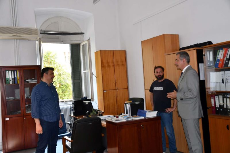 Συνάντηση γνωριμίας με το προσωπικό που στεγάζεται στις εγκαταστάσεις του Διοικητηρίου είχε σήμερα ο Υφυπουργός Εσωτερικών (Τομέα Μακεδονίας – Θράκης) Στάθης Κωνσταντινίδης. Συνοδευόμενος από τον Γενικό Διευθυντή κ. Θ. Παπαδόπουλο επισκέφθηκε τα γραφεία και συνομίλησε με τα υπηρεσιακά στελέχη από τα οποία ζήτησε να του καταθέσουν προτάσεις για την ακόμη καλύτερη λειτουργία των υπηρεσιών.