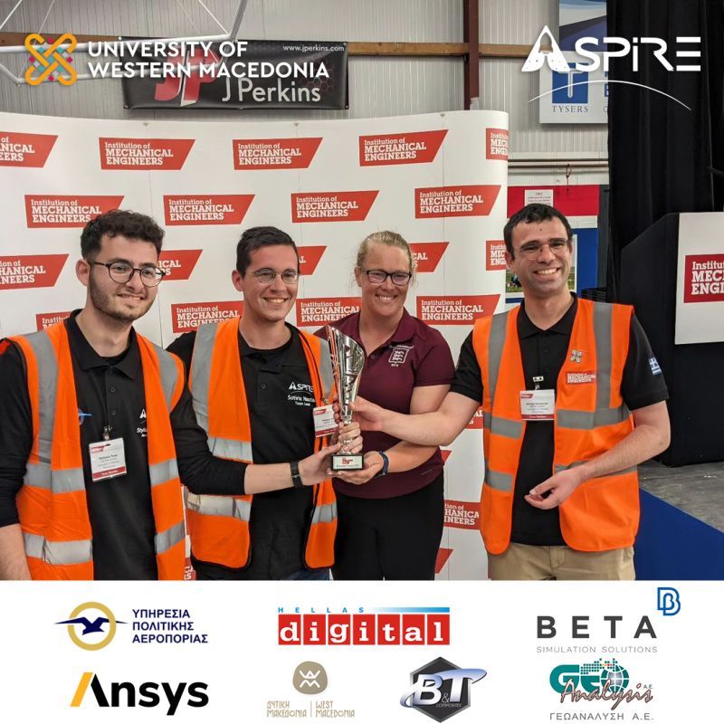 Με το βραβείο Simulation Award στις βαλίτσες της για το Project Iris επέστρεψε η ομάδα αεροδιαστημικής ASPiRE του Πανεπιστημίου Δυτικής Μακεδονίας από τον διεθνή διαγωνισμό αεροναυπηγικής UAS Challenge που διοργανώθηκε από το  ινστιτούτο Μηχανολόγων Μηχανικών του Ηνωμένου Βασιλείου στο Buckminster. Η φοιτητική ομάδα η οποία διαγωνίστηκε με τα τεχνικά έγγραφα για τον σχεδιασμό του αεροσκάφους και το business plan, κατετάγη 13η μεταξύ 28 συμμετεχόντων από όλο τον κόσμο για την μοντελοποίηση του αεροσκάφους στο λογισμικό προσομοίωσης πτήσης X-Plane.