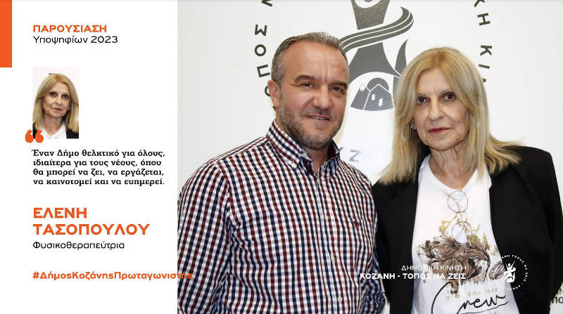 Στις αυτοδιοικητικές εκλογές του Οκτώβρη, η Ελένη Τασοπούλου θα είναι υποψήφια με τη Δημοτική Κίνηση «Κοζάνη – Τόπος να Ζεις»