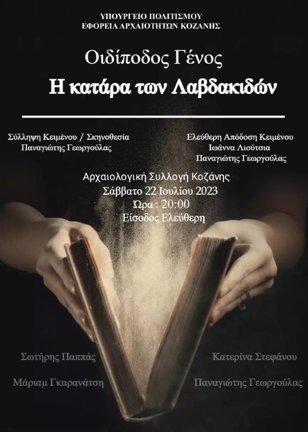 Η Εφορεία Αρχαιοτήτων Κοζάνης ανεβάζει παράσταση/performance με τίτλο ‘Οιδίποδος Γένος: Η κατάρα των Λαβδακιδών’