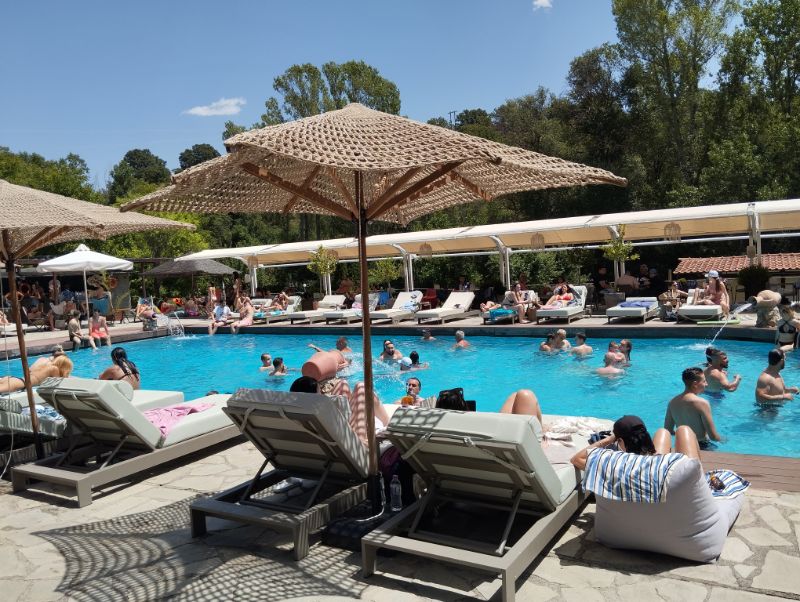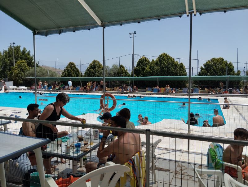 Ο κόσμος που δεν απέδρασε σε παραθαλάσσιους προορισμούς, δεν έχασε την ευκαιρία να βρεθεί στις πισίνες πέριξ της πόλης, σε αναζήτηση δροσιάς.