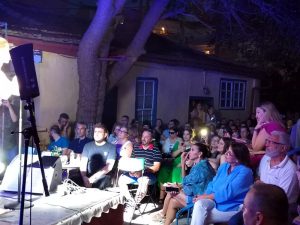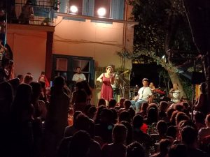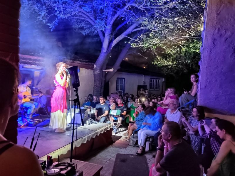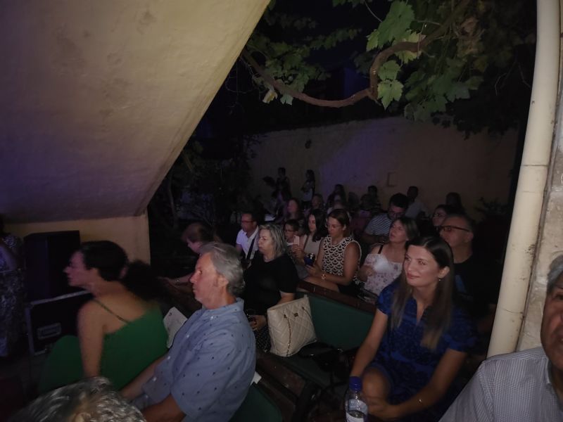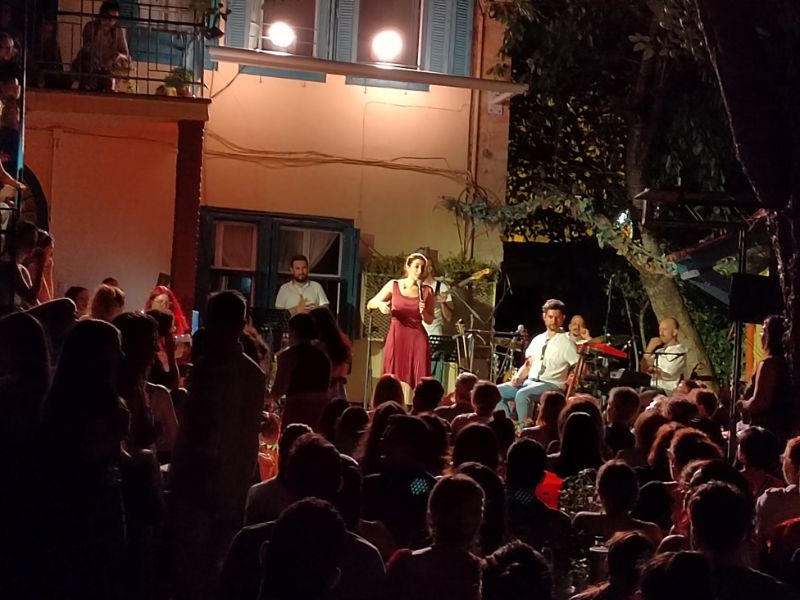 Μόλις μπήκαν και οι “τελευταίοι” στον χώρο, τα φώτα έπεσαν στα πρόσωπα των μουσικών που κατέβηκαν από την σκάλα του ιστορικού σπιτιού, για να ανέβουν στη σκηνή, ενώ με το πιο θερμό χειροκρότημα, την εμφάνισή της έκανε η ταλαντούχα τραγουδοποιός και ερμηνεύτρια, Μαρίζα Ρίζου.