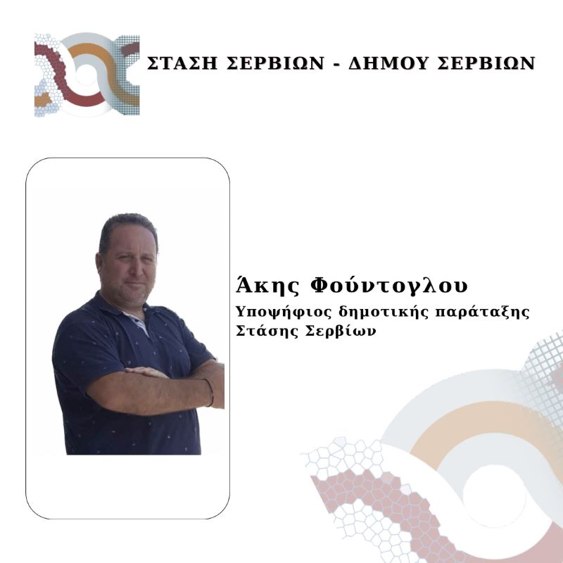 Σέρβια - Βελβεντό 25/07/2023 Υποψήφιος με το συνδυασμό της Λαζαρίτσας Σπυρίδου “Στάση Σερβίων”, ο Άκης Φούντογλου 0 Υποψήφιος με το συνδυασμό της Λαζαρίτσας Σπυρίδου “Στάση Σερβίων” ο Άκης Φούντογλου.