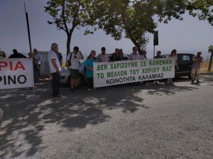 Παράσταση διαμαρτυρίας πραγματοποίησαν κάτοικοι της Καλαμιάς μαζί με εκπροσώπους φορέων και επιτροπές αγώνων ενάντια στην πρόσφατη (14/7/2023) υπογραφή άδειας εγκατάστασης δύο φωτοβολταϊκών πάρκων ακριβώς δίπλα από τον οικισμό της Καλαμιάς, μετά την δικαστική απόφαση του Μονομελούς Πρωτοδικείου Κοζάνης για την απαγόρευση εργασιών στα φωτοβολταϊκό πάρκο της Καλαμιάς, στις 6 Ιουλίου.
