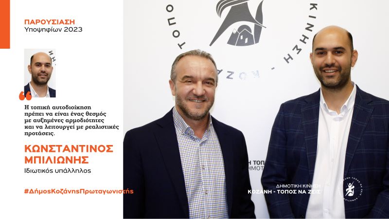 Στις αυτοδιοικητικές εκλογές του Οκτώβρη, ο Κώστας Μπιλιώνης θα είναι υποψήφιος με τη Δημοτική Κίνηση “Κοζάνη – Τόπος να Ζεις”.