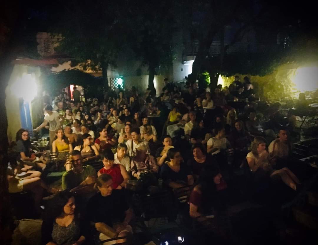Η αυλή του ιστορικού σπιτιού γέμισε, οι θεατές πήραν θέση, τα φώτα έσβησαν και η ταινία μόλις άρχισε.