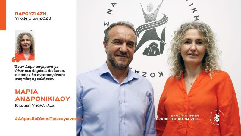 Στις αυτοδιοικητικές εκλογές του Οκτώβρη, η Μαρία Ανδρονικίδου θα είναι υποψήφια με τη Δημοτική Κίνηση «Κοζάνη – Τόπος να Ζεις»