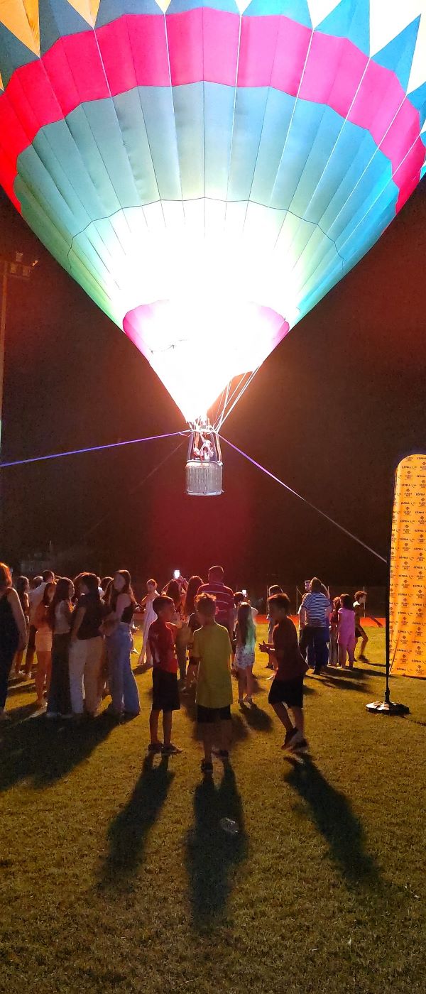 Όμως μια έκπληξη επιφύλασσε η χθεσινή βραδιά σε μικρούς και μεγάλους. Ένα αερόστατο το οποίο τράβηξε τα βλέμματα όλων από την πρώτη στιγμή ενθουσιάζοντας κυρίως τα παιδιά. Το αερόστατο ήταν εκεί και οι τυχεροί μετά από κλήρωση, είχαν την ευκαιρία να αγναντέψουν τη θέα από ψηλά.