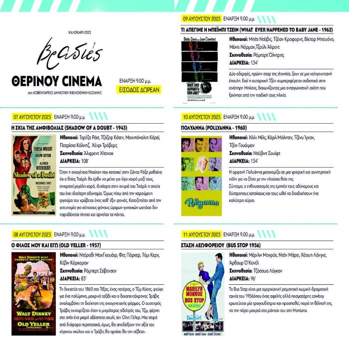 Καλοκαίρι 2023: «Βραδιές Θερινού Σινεμά» και φέτος στην Κοβεντάρειο Δημοτική Βιβλιοθήκη Κοζάνης – Δείτε το πρόγραμμα