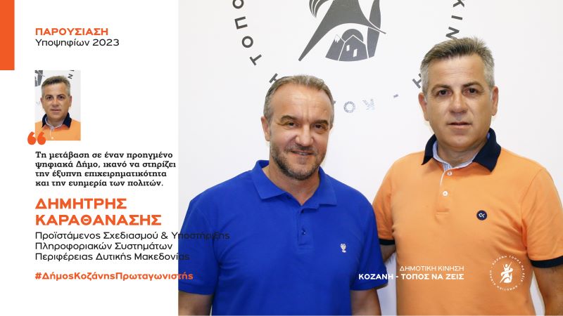 Στις αυτοδιοικητικές εκλογές του Οκτώβρη, ο Δημήτρης Καραθανάσης θα είναι υποψήφιος με τη Δημοτική Κίνηση «Κοζάνη – Τόπος να Ζεις».