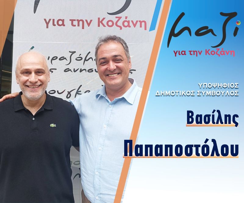 Είναι μαζί μας και συμπορεύεται στον αγώνα για ένα νέο Δήμο Κοζάνης και ο τ. Πρόεδρος της Κοβενταρείου Δημοτικής Βιβλιοθήκης, ο Βασίλης Παπαποστόλου.