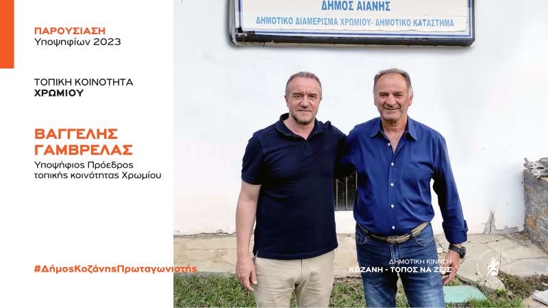 Ανακοίνωση υποψηφιότητας του Βαγγέλη Γαμβρέλα για την Τοπική Κοινότητα Χρωμίου με τη Δημοτική Κίνηση “Κοζάνη – Τόπος να Ζεις”