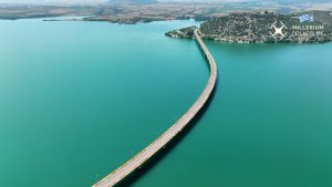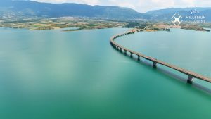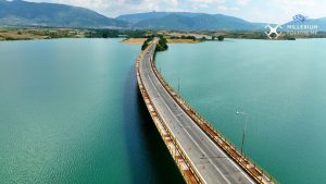 Τα εγκαίνιά της Υψηλής Γέφυρα Σερβίων έγιναν το Νοέμβριο του 1976, της μεγαλύτερης για την εποχή σε μήκος γέφυρα στην Ελλάδα και στα Βαλκάνια, με συνολικό μήκος να φτάνει τα 1.372 μέτρα και πλάτος τα 13 μέτρα. Η γέφυρα στηρίζεται σε 27 κολόνες που οι βάσεις τους βρίσκονται στον πυθμένα του ποταμού Αλιάκμονα, με τη μεγαλύτερη από αυτές να έχει ύψος 53 μέτρα. Το τοξωτό της σχήμα και το κενό εσωτερικό των στηλών της , αποτέλεσαν στοιχεία ασφάλειας και σταθερότητας σε σχέση με τις προηγούμενες γέφυρες που ήταν ευθύγραμμες. Η τεχνητή λίμνη Πολυφύτου έχει επιφάνεια 74 τετραγωνικών χιλιομέτρων, με μέγιστο βάθος 46 μέτρα και είναι ιδιοκτησία της ΔΕΗ η οποία έχει παραχωρηθεί στους κατοίκους προς αλιευτική και οίκο τουριστική εκμετάλλευση.