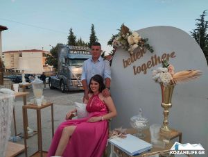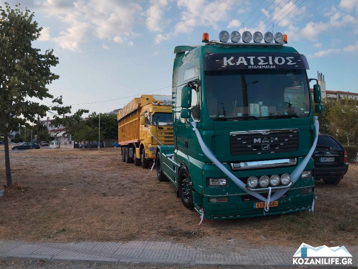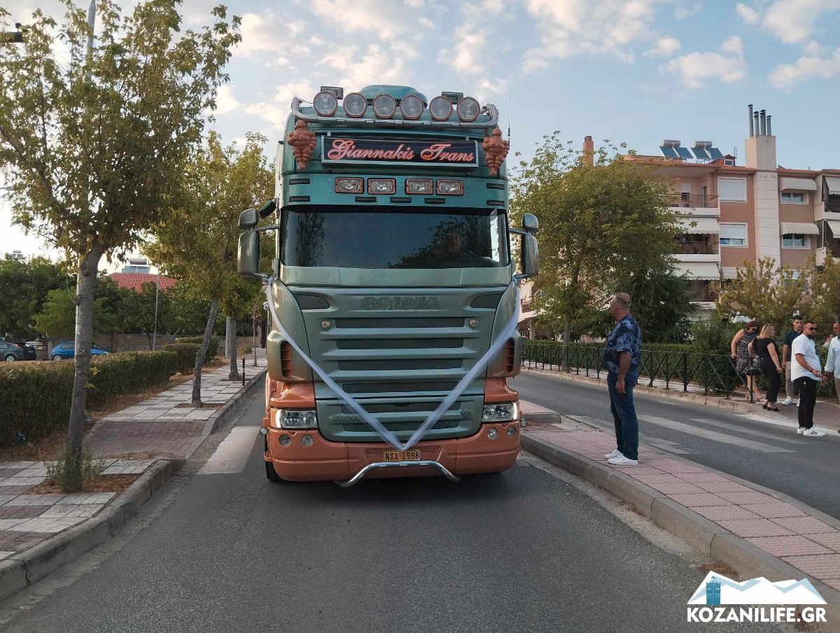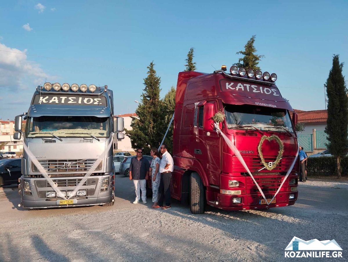 Ο γαμπρός, ο Νίκος , επαγγελματίας οδηγός νταλίκας, παρέα με τους συναδέλφους του, προκάλεσαν έναν ευχάριστο πανικό στην πόλη της Κοζάνης, προκειμένου να κάνει αισθητή την αυτή την ευχάριστη και  ιερή στιγμή που θα παντρευόταν την εκλεκτή της καρδιάς του, Μαρία.