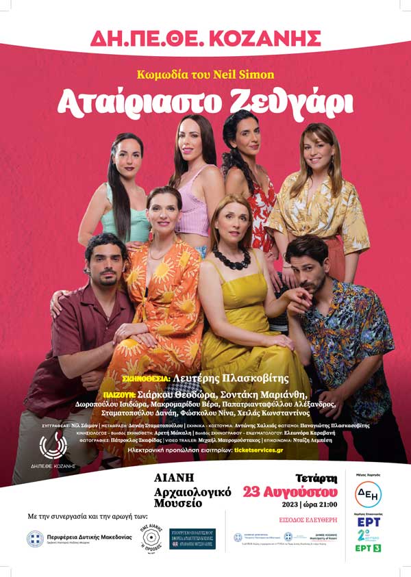 Περισσότερες πληροφορίες για την παράσταση, θα βρείτε στη διεύθυνση: https://www.ticketservices.gr/event/atairiasto-zevgari-dipethe-kozanis/