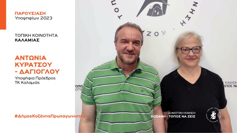Διαχρονικός στόχος της Δημοτικής Κίνησης «Κοζάνη Τόπος να Ζεις» είναι η ισόρροπη ανάπτυξη μεταξύ της πόλης και τον τοπικών κοινοτήτων στον Δήμο Κοζάνης και η ενίσχυση των υποδομών σε όλα τα χωριά του Δήμου μας και αυτό θα επιδιώξουμε και για την τοπική κοινότητα Καλαμιάς με την Αντωνία Κυρατσού – Δαγιόγλου Πρόεδρο.