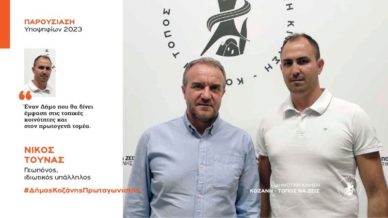 Στις αυτοδιοικητικές εκλογές του Οκτώβρη, ο Νίκος Τούνας θα είναι υποψήφιος με τη Δημοτική Κίνηση «Κοζάνη – Τόπος να Ζεις».