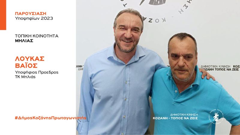 Η Δημοτική Κίνηση «Κοζάνη Τόπος να Ζεις» καλωσορίζει με χαρά ως υποψήφιο Πρόεδρο για την τοπική Κοινότητα Μηλιάς τον Βάϊο Λούκα.