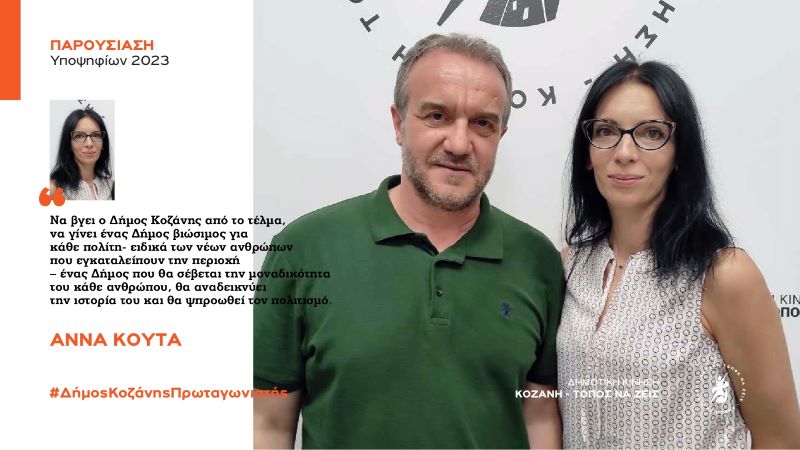 Στις αυτοδιοικητικές εκλογές του Οκτώβρη, η Άννα Κούτα θα είναι υποψήφια με τη Δημοτική Κίνηση «Κοζάνη – Τόπος να Ζεις»