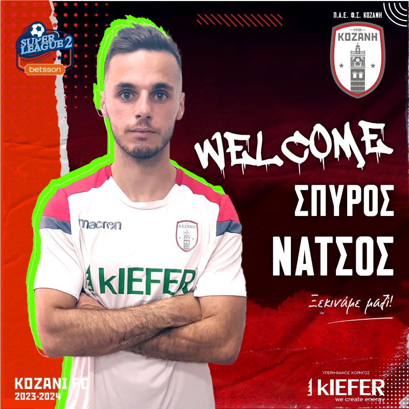 Η διοίκηση ΠΑΕ ΦΣ ΚΟΖΑΝΗ ανακοινώνει την έναρξη της συνεργασίας της με τον ποδοσφαιριστή Σπύρο Νάτσο, που έρχεται να ενισχύσει τη ομάδας μας για την επόμενη αγωνιστική περίοδο. Ο 25χρονος διεθνής ταλαντούχος ποδοσφαιριστής συνεχίζει την καριέρα του στην ομάδα μας, μετά από τον Πανσερραϊκό την περασμένη σεζόν και στο πρωτάθλημα της Super League 2, ενώ πριν τον Ατρόμητο Αθηνών στην Super League 1.