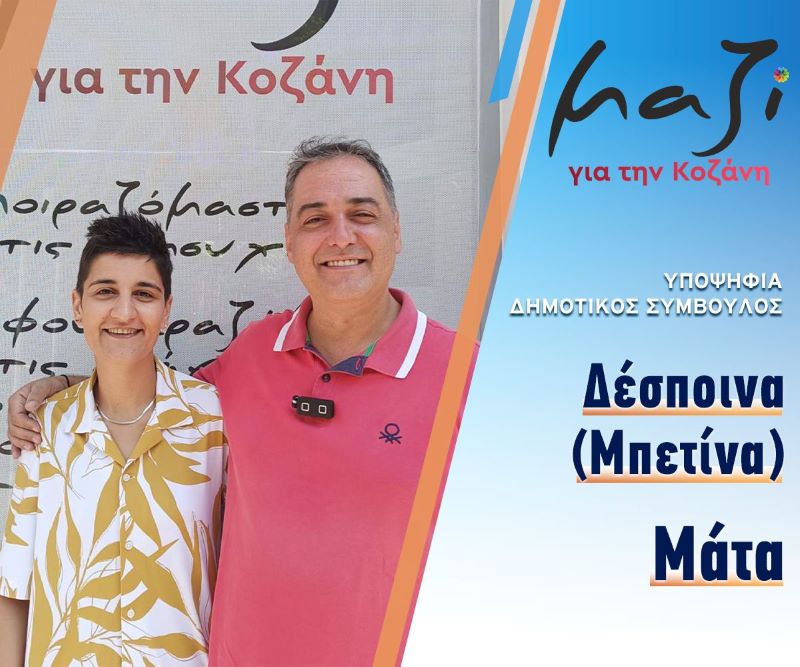 «Μαζί για την Κοζάνη» και η Μάτα Δέσποινα (Μπετίνα). Κόρη του Γιώργου Μάτα (συνταξιούχος ΔΕΗ) και της Ευτυχίας Κρανιώτη (συνταξιούχος ΟΤΕ). Είναι απόφοιτη ιατρικών συσκευών και απεικονίσεων (ακτινολογίας-ραδιολογίας) και εργάζεται εδώ και 10 χρόνια σε οδοντιατρείο στην Κοζάνη. Είναι ενεργό μέλος πολιτιστικού συλλόγου και αυτό της έδωσε το έναυσμα να ασχοληθεί με τα κοινά. Αποδέχτηκε αμέσως την πρόταση του Γιάννη Κοκκαλιάρη γιατί οι νέοι Μαζί θα πάνε τον τόπο μπροστά.