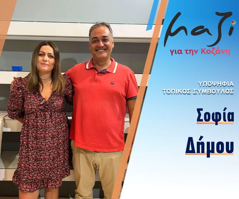 Ονομάζομαι Δήμου Σοφία. Είμαι νοσηλεύτρια. Είμαι παντρεμένη με τον Αθανασιάδη Λάζαρο και έχουμε δύο παιδιά. Συμμετέχω ως υποψήφια στον συνδυασμό «Μαζί για την Κοζάνη» με τον Γιάννη Κοκκαλιάρη για να έναν καλύτερο Δήμο Κοζάνης.