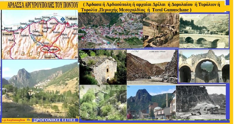 ( Άρδασα ή Αρδασόπολη ή αρχαιαι Δρίλαι ή Δορυλαίου ή Τυρόλιον ή Τυρολία ,Περιοχής Μεσοχαλδίας ή Τorul Gumuschane )