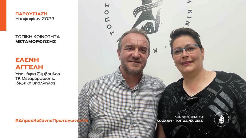 Η Δημοτική Κίνηση «Κοζάνη Τόπος να Ζεις» καλωσορίζει με χαρά ως υποψήφια σύμβουλο για την τοπική Κοινότητα Μεταμόρφωσης την Ελένη Αγγελή.