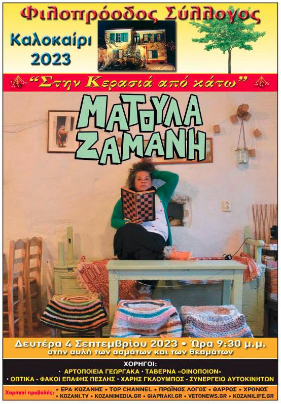 Δυναμική, ανατρεπτική και απρόβλεπτη, έρχεται στην κοζανίτικη αυλή που τόσο και η ίδια λατρεύει, να ανεβάσει διαθέσεις και να χαρίσει σε όλους μας μια ακόμη μοναδική, καθηλωτική μουσική γιορτή του έντεχνου και της παράδοσης.
