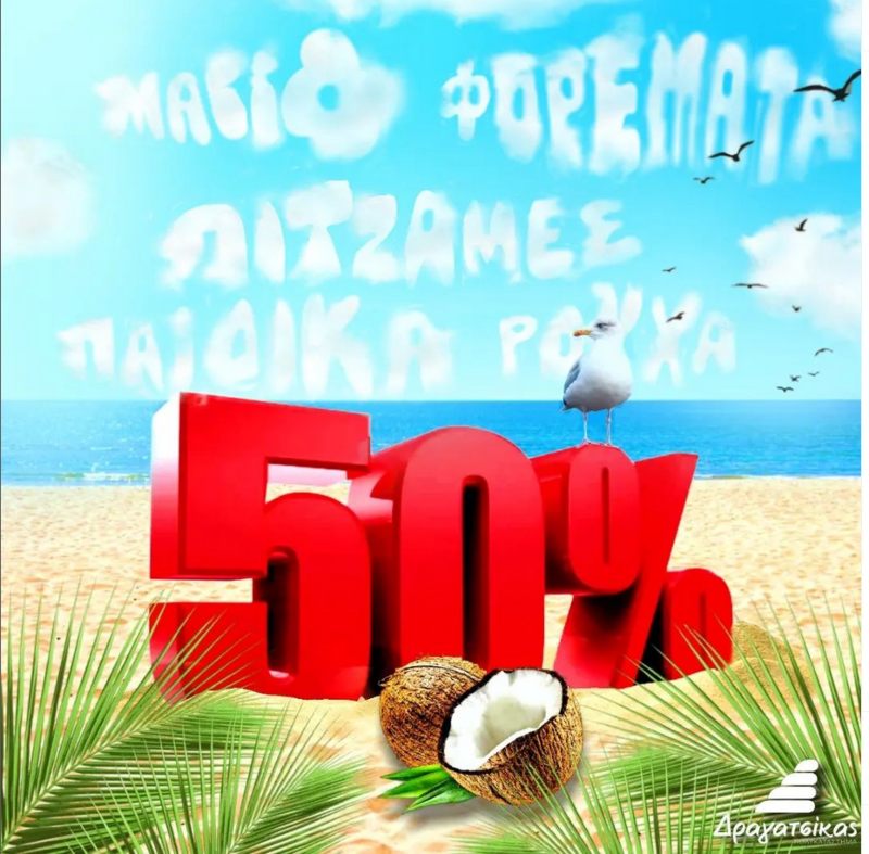 Στο Πολυκάταστημα Δραγατσίκας θα βρείτε όλες τις καλοκαιρινές συλλογές με -50% έκπτωση .
