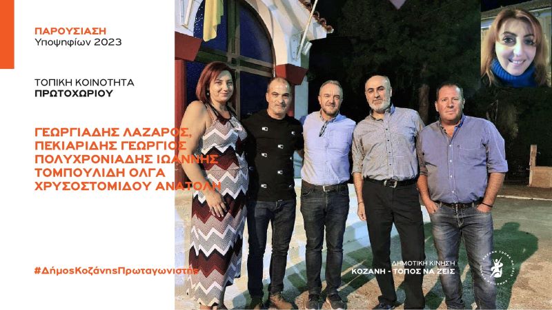 Η Δημοτική Κίνηση «Κοζάνη Τόπος να Ζεις» καλωσορίζει με χαρά και ανακοινώνει για την τοπική κοινότητα Πρωτοχωρίου τους υποψήφιους συμβούλους,