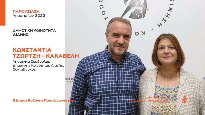 Η Δημοτική Κίνηση «Κοζάνη Τόπος να Ζεις» καλωσορίζει με χαρά και ανακοινώνει για την Δημοτική κοινότητα Αιανής την υποψήφια σύμβουλο Κωνσταντία Τζώρτζη – Κακαβέλη.