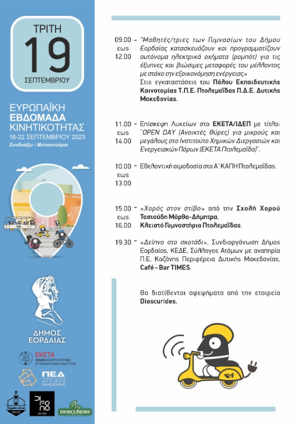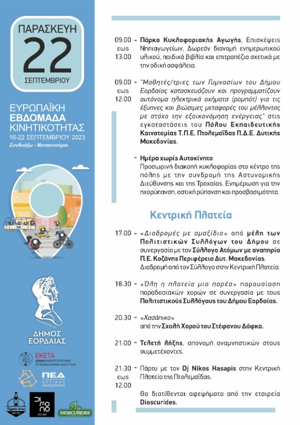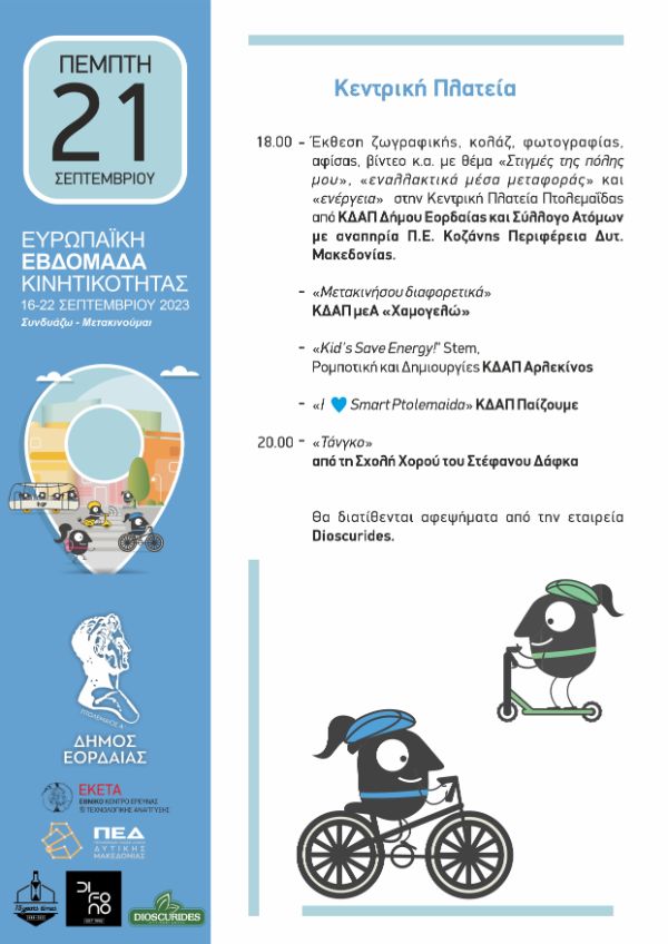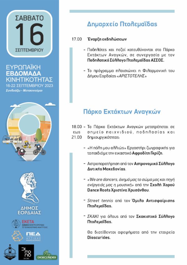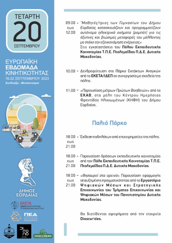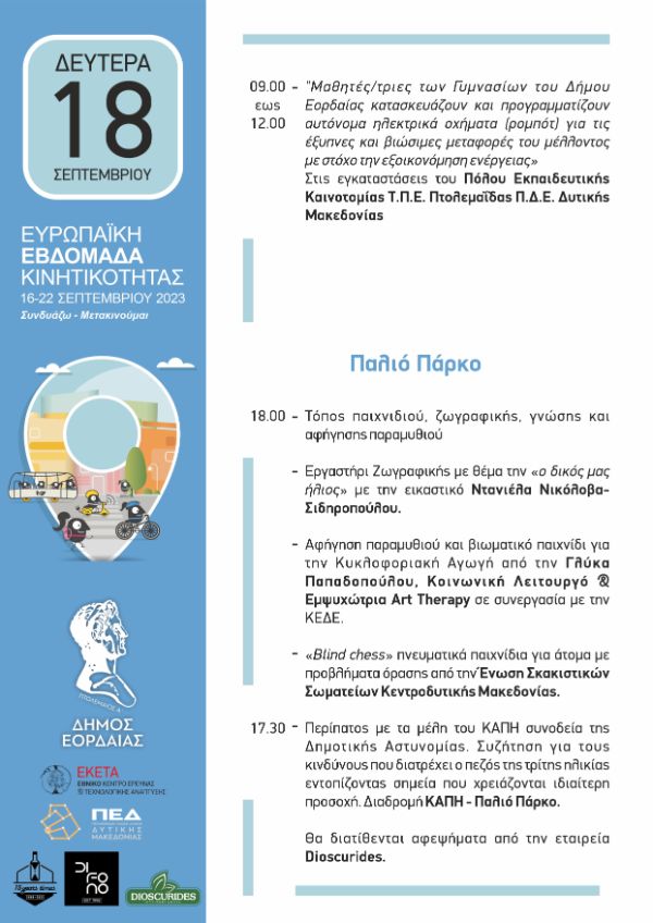 Ο Δήμος Εορδαίας για άλλη μια χρονιά συμμετέχει στην Ευρωπαϊκή Εβδομάδα Κινητικότητας, μια εμβληματική εκστρατεία ευαισθητοποίησης που πραγματοποιείται κάθε χρόνο από τις 16 έως τις 22 Σεπτεμβρίου.