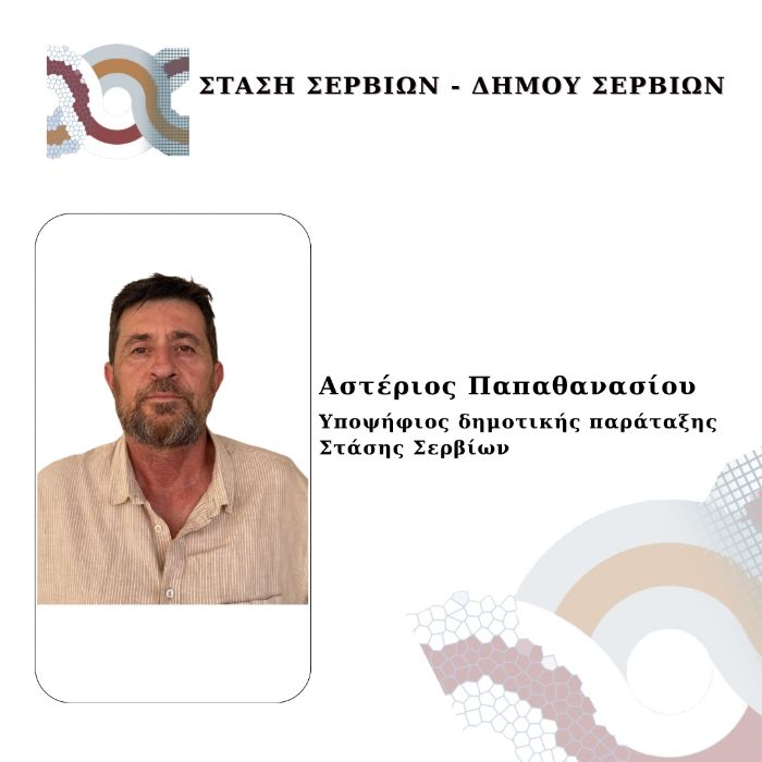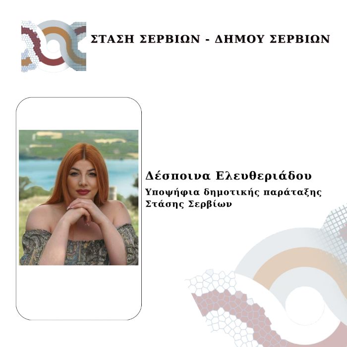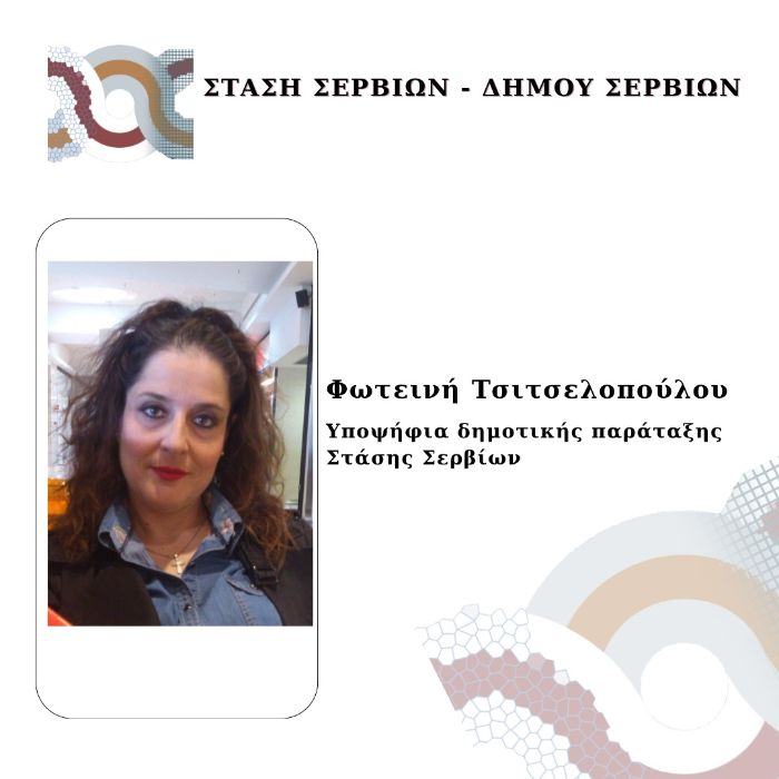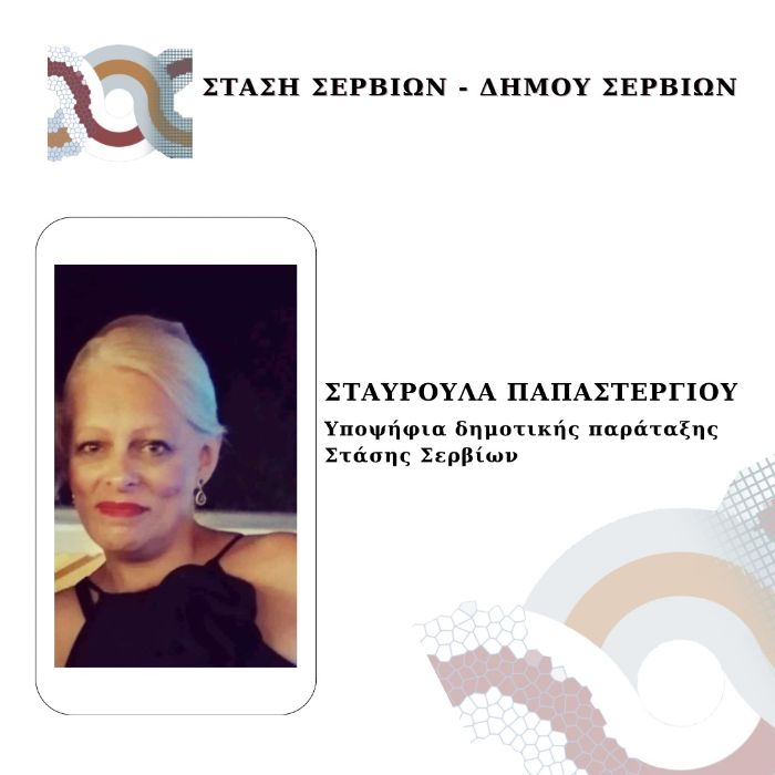 Σέρβια - Βελβεντό 07/09/2023 Νέοι υποψήφιοι με τον συνδυασμό ‘Στάση Σερβίων’ και επικεφαλής την Ρίτσα Σπυρίδου 0 Νέοι υποψήφιοι με τον συνδυασμό ‘Στάση Σερβίων’ και επικεφαλής την Ρίτσα Σπυρίδου.