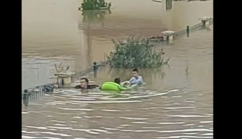 Πληροφορίες αναφέρουν ότι υπάρχουν εγκλωβισμένοι άνθρωποι στα σπίτια τους, αφού το νερό έχει φτάσει στις ταράτσες.