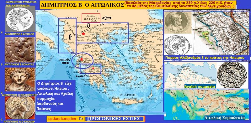 Ο Δημήτριος ο Αιτωλικός πέθανε το 229 π.Χ.σε ηλικία 54 ετών των διαδέχθηκε ο Αντίγονος Γ’ ο Δώσον όταν συγκρούσθηκε με τους Δαρδάνους όπου απειλούμενος από αυτούς , σύρθηκε προς τα βόρεια και μετά από ήττα που υπ΄τστη.