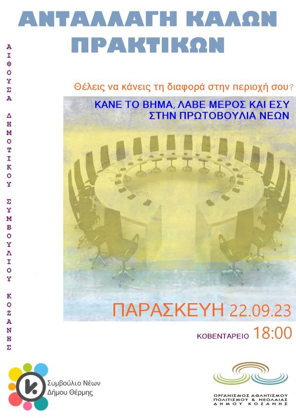 Ο Δήμος Κοζάνης και ο Οργανισμός Αθλητισμού, Πολιτισμού και Νεολαίας, εκκινούν μια προσπάθεια ενεργοποίησης των νέων της περιοχής για τη δημιουργία «Συμβουλίου Νέων Δήμου Κοζάνης». Λαμβάνοντας υπόψη καλές πρακτικές άλλων Δήμων και ειδικότερα την εμπειρία του Συμβουλίου Νέων του Δήμου Θέρμης (βασισμένο στα πρότυπα της σοσιοκρατίας) , διοργανώνουν εναρκτήρια συνάντηση την Παρασκευή 22 Σεπτεμβρίου, στις 18:00 το απόγευμα, στην Αίθουσα Συνεδριάσεων του Δημοτικού Συμβουλίου Κοζάνης «Κοβεντάρειο», καλώντας νέους ηλικίας από 17 έως 30 ετών.