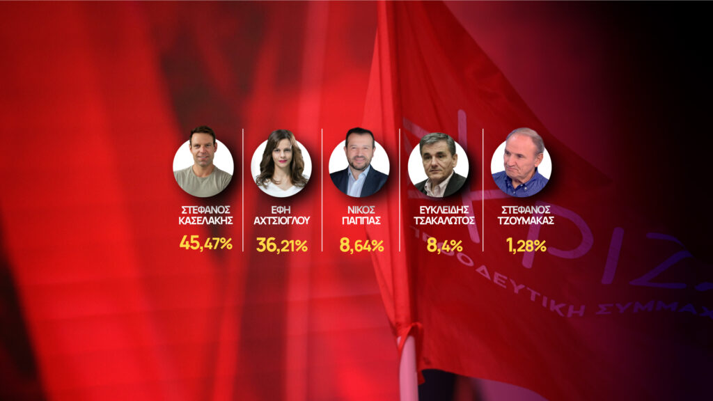 Στις εκλογές για την ανάδειξη προέδρου στον ΣΥΡΙΖΑ – Προοδευτική Συμμαχία τις περισσότερες ψήφους συγκέντρωσε ο Στέφανος Κασσελάκης, με ποσοστό 45,47% , δεύτερη η Έφη Αχτσιόγλου με 36,21%, τρίτος ο Νίκος Παππάς με 8,64%, τέταρτος ο Ευκλείδης Τσακαλώτος με 8,4% και πέμπτος ο Στέφανος Τζουμάκας με 1,28%. Σύμφωνα με τον κ. Δρόσο, πρόεδρο της Εφορευτικής Επιτροπής του κόμματος, τα αποτελέσματα αυτά προέρχονται απο το 90,13% των εκλογικών τμημάτων. Ο κ. Δρόσος διευκρίνισε ότι ψήφισαν 146.635 μέλη του ΣΥΡΙΖΑ.
