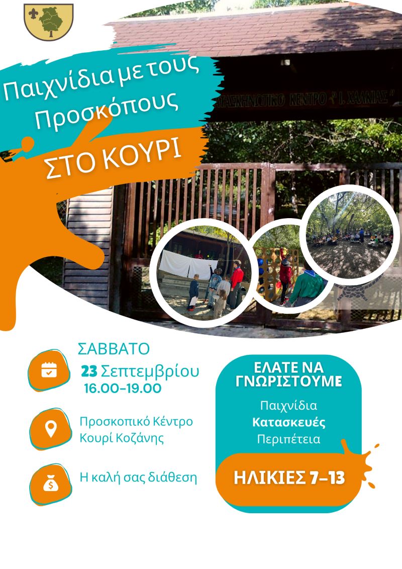 Για αυτό και το Σάββατο 23 Σεπτεμβρίου, οι Πρόσκοποι Κοζάνης ανοίγουμε το Προσκοπικό Κέντρο στο δάσος Κουρί και καλούμε όλα τα παιδιά από 7 έως 13 ετών και γονείς να έρθουν να παίξουν μαζί μας και να γνωριστούμε!