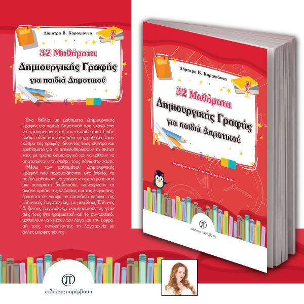 Μόλις κυκλοφόρησε το βιβλίο «32 Μαθήματα Δημιουργικής Γραφής για παιδιά Δημοτικού» της Δήμητρας Β. Καραγιάννη από τις Εκδόσεις Παρέμβαση. Πρόκειται για ένα εκπαιδευτικό βιβλίο που στόχο έχει να βοηθήσει τους μαθητές να ασκηθούν στον μαγικό κόσμο της γραφής, μέσα από ευφάνταστες και δημιουργικές δραστηριότητες, στο πλαίσιο της δημιουργικής γραφής. Μέσα από τις 32 ενότητές του παρέχονται ολοκληρωμένα μαθήματα, αποτελώντας παράλληλα πολύτιμο εργαλείο για τον εκπαιδευτικό, που εξοικειώνουν τα παιδιά με τη συγγραφή, με σπουδαία έργα της παγκόσμιας και ξένης λογοτεχνίας, αλλά και της μουσικής & της ζωγραφικής, ενώ υπάρχουν και πιο κλασικά θέματα διδασκαλίας που συναπαρτίζουν τη θεματική του. Τα online Powerpoints, που συνοδεύουν πολλές από τις ενότητες, οπτικοποιώντας πολλές από τις ιστορίες και παρέχοντας χρήσιμο συνοδευτικό υλικό, προσελκύουν την προσοχή των παιδιών, μεταδίδοντάς τους με έναν πιο αποτελεσματικό τρόπο τα διάφορα μηνύματα.