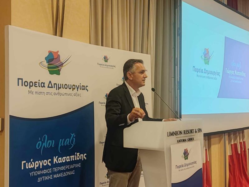Απόλυτα πεπεισμένος εμφανίστηκε ο Περιφερειάρχης Δυτικής Μακεδονίας και εκ νέου υποψήφιος Γιώργος Κασαπίδης ότι ο συνδυασμός του «Πορεία Δημιουργίας» θα είναι ο νικητής των εκλογών το βράδυ της 8ης Οκτωβρίου από την Καστοριά κατά τη διάρκεια της ομιλίας του στην αίθουσα του Ξενοδοχείου Limneon Resort.