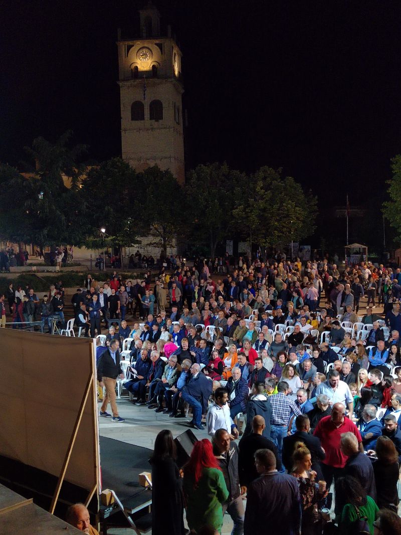 Η προεκλογική ομιλία πραγματοποιήθηκε στην κεντρική πλατεία Κοζάνης, παρουσία πλήθος κόσμου, υποψήφιων του συνδυασμού ‘Ενότητα Δήμου Κοζάνης’, συγγενών και υποστηρικτών του συνδυασμού.