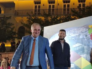 Ο ίδιος συνέχισε «αξίζει να θυμηθούμε ότι επί θητείας μας, το 2010, γίνεται πανελλήνιος αρχιτεκτονικός διαγωνισμός, τον κερδίζει μια ομάδα αρχιτεκτόνων από τη Θεσσαλονίκη και ξεκινά το έργο με το Δημοτικό Συμβούλιο να εγκρίνει τη μελέτη το 2013 και το 2014 να ξεκινούν οι εργασίες του έργου. Και είμαι πολύ χαρούμενος γιατί ο Δήμος Κοζάνης βραβεύτηκε, όχι μόνο για το έργο αυτό, αλλά και για άλλα που κοσμούν σήμερα την Κοζάνη όπως το νέο κτίριο της Δημοτικής Βιβλιοθήκης. Διακρινόμαστε και πρωτοπορούμε σε μια σειρά από δράσεις που σχετίζονται με την ευρωπαϊκή πορεία του Δήμου, την διαχείριση των απορριμμάτων αλλά και τις κοινωνικές πρωτοβουλίες και δράσεις. Έτσι προχωράει και ο Δήμος μας σήμερα, αυτή τη στιγμή που μιλάμε. Βήμα- βήμα κλείνει τις εκκρεμότητές του και συνεχίζει για να γίνει ένας σύγχρονος Ευρωπαϊκός Δήμος» .
