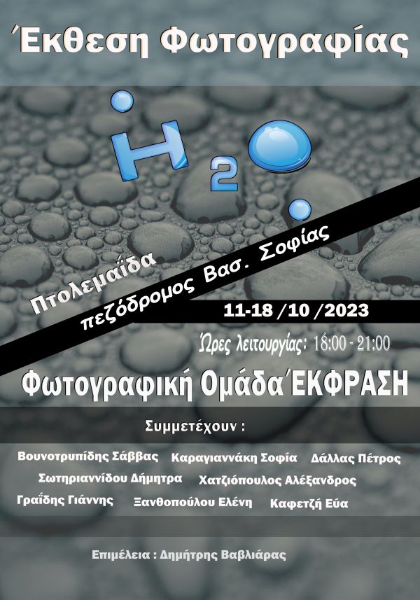 Το θέμα της έκθεσης είναι το νερό ( Η2Ο ). Στην ουσία είναι μια προσευχή μέσω της τέχνης στην πηγή της ζωής όχι μόνο του ανθρώπου αλλά και όλων των οργανισμών πάνω στη γη.