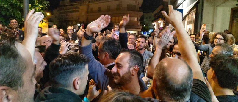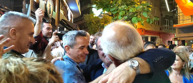 Με αγκαλιές, χειροκροτήματα, κόρνες και επευφημίες υποδέχτηκαν η ομάδα του, συγγενείς φίλοι, υποστηρικτές και κόσμος τον νέο Δήμαρχο Κοζάνης Γιάννη Κοκκαλιάρη.