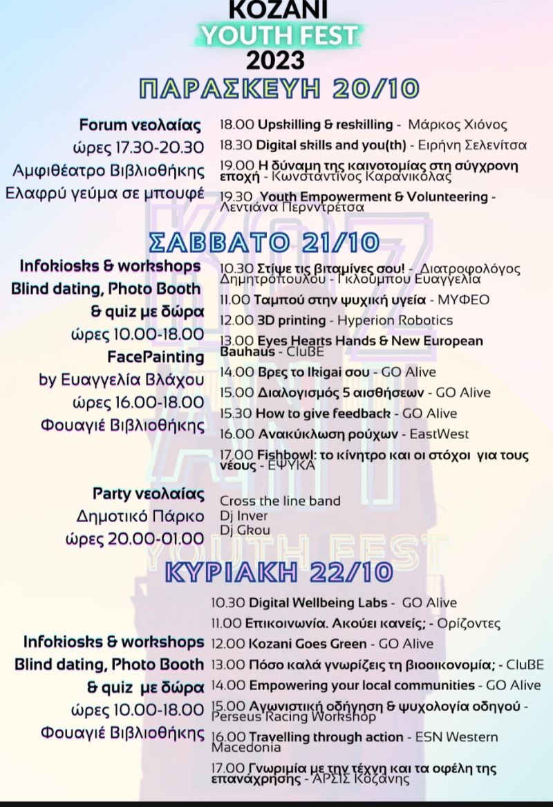 Ενημερώσου για τις λεπτομέρειες: https://goalive.eu/kozaniyouthfest/