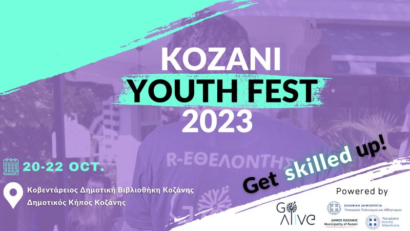 Ο οργανισμός νεολαίας “GO Alive” σε συνεργασία με το Υπουργείο Πολιτισμού, την Περιφέρεια Δυτικής Μακεδονίας, το Δήμο Κοζάνης και το Εμπορικό και Βιομηχανικό Επιμελητήριο Κοζάνης, διοργανώνουν για δεύτερη συνεχόμενη χρονιά το Kozani Youth Fest 2023.