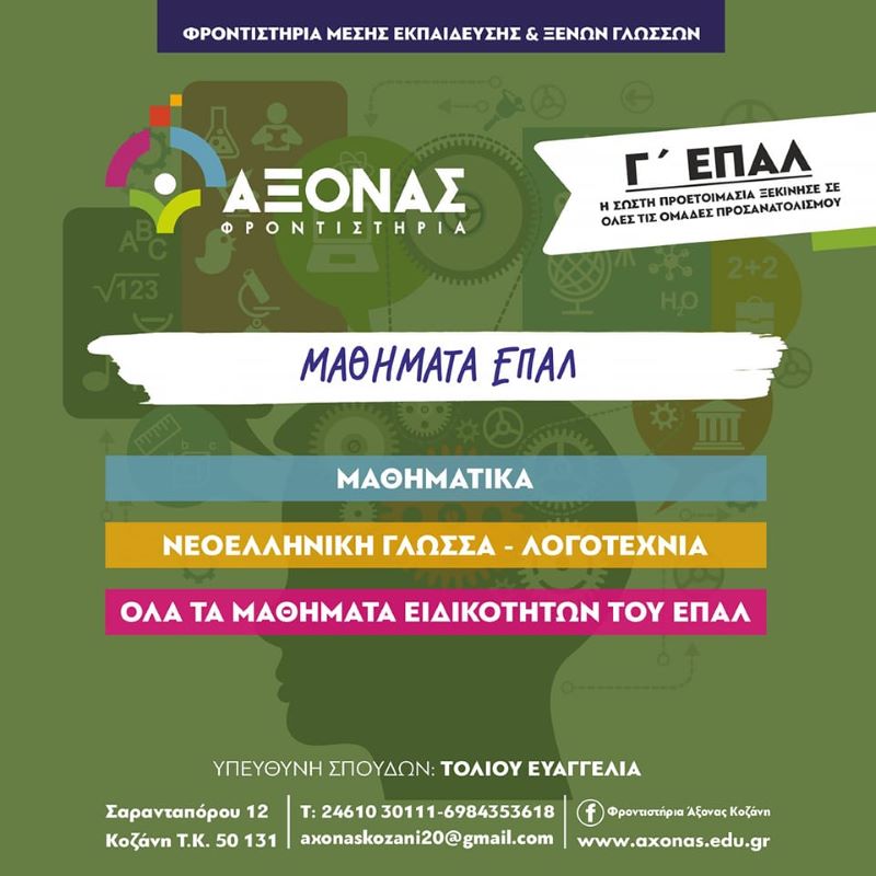 Στα φροντιστήρια Μ.Ε. και Ξένων Γλωσσών Άξονας, παρέχουμε ολοκληρωμένα προγράμματα και για τους μαθητές των ΕΠΑΛ.