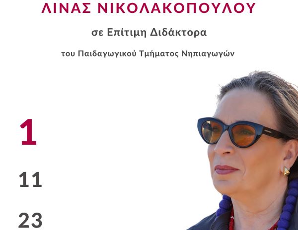 Σε Επίτιμη Διδάκτορα του Παιδαγωγικού Τμήματος Νηπιαγωγών, της Σχολής Κοινωνικών και Ανθρωπιστικών Επιστημών, του Πανεπιστημίου Δυτικής Μακεδονίας θα αναγορευτεί η στιχουργός Λίνα Νικολακοπούλου.